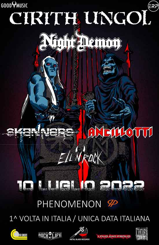 A causa delle vigente normative in vigore riguardanti l’aumento dei casi di positività da Covid 19, il concerto dei Cirith Ungol inizialmente previsto per il 29 gennaio è posticipato al 10 luglio. Rimangono invariate la venue (Phenomenon di Fontaneto D’agogna NO) e le band di supporto (Night Demon, Ancillotti, Skanners e il dj set di Ell ‘n’ Rock)