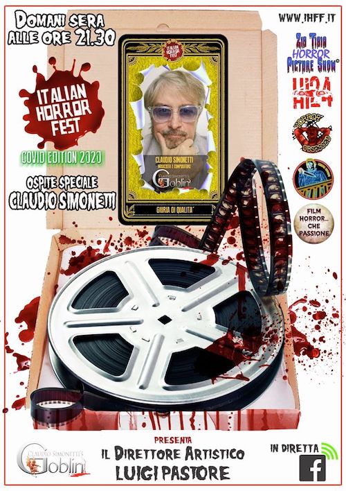 LUNEDI 15 GIUGNO ORE 21:30: Questa sera annullate tutti gli impegni, spegnete la TV e collegatevi sulla pagina dell’ Italian Horror Fest perché ci sarà una diretta molto speciale, in compagnia del #Maestro Claudio Simonetti. E non dite: «Tanto poi me la riguardo…» perché non è la stessa cosa e non avrete la possibilità di interagire e proporre anche le vostre domande. Vi ricordo, come sempre, che la diretta andrà in contemporanea anche sulle pagine dei nostri #mediapartners: Essere Horror, Horror Italia 24, Film Horror Che Passione, Horror Obsessed, Zio Tibia Horror Picture Show (che ringrazio per le belle locandine degli appuntamenti) ed eccezionalmente anche sulla pagina ufficiale Goblin – Claudio Simonetti’s.