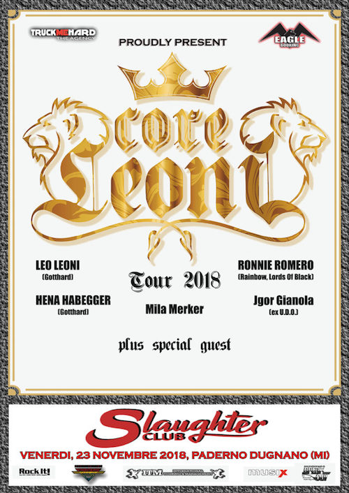 Dopo il grande successo al Frontiers Rock Festival 2018, Truck Me Hard e Eagle Booking hanno il piacere di annunciare il ritorno in Italia dei CORELEONI. La band del chitarrista dei GOTTHARD, Leo Leoni, si esibirà per un’unica data italiana il prossimo 23 novembre allo Slaughter Club di Paderno Dugnano (MI).