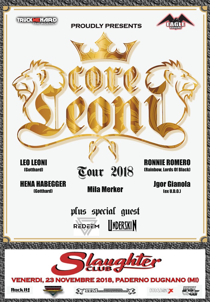 Saranno gli UNDERSKIN ed i REDEEM la band di supporto e gli special guest dell’unica data italiana dei CORELEONI!