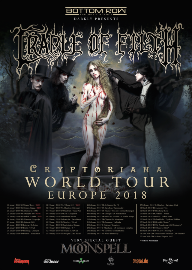 È partito ieri da Praga il tour europeo dei CRADLE OF FILTH a supporto del nuovo album “Cryptoriana – The Seductiveness Of Decay” (recensione qui).