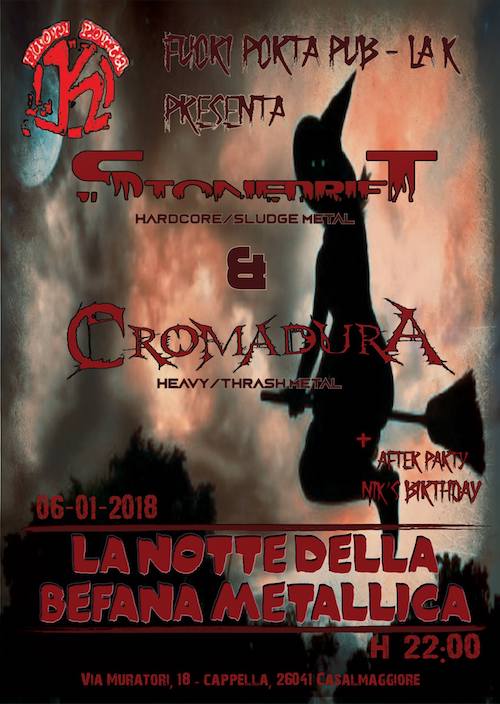 Sabato 6 gennaio , sul palco del Fuori Porta la K arrivano i Cromadura e gli STONEDRIFT.