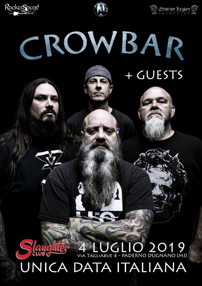 Grande appuntamento allo Slaughter Club. Rocker Sound Agency in collaborazione con Etrurian Legion Promotion è lieta di un annunciare un gradito ritorno. Tornano nel nostro paese i leggendari CROWBAR. La band sarà a Milano per un’UNICA DATA ITALIANA che farà parte del loro “Summer Tour”. I maestri dello Sludge/ Doom dopo vari concerti in giro per l’ Europa si esibiranno facendoci ascoltare la storia dei loro più grandi successi. Dopo 30 anni esatti di carriera e di palchi calcati in tutto il mondo, la band di New Orleans attiva appunto dal lontano 1989 e “capitanata” da Kirk Windstein non vede l’ora di infiammare il palco del locale Milanese per un concerto che si preannuncia memorabile. In apertura per questa grande serata, due band di livello del panorama metal Italiano: gli Hell Obelisco e i Di’ Aul.