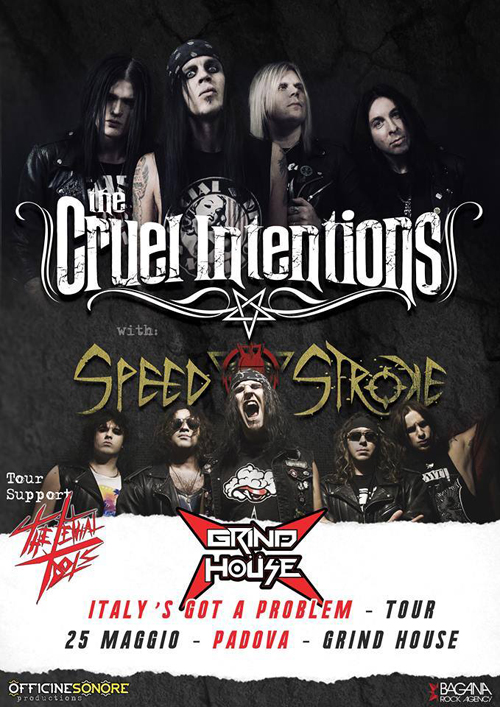 Amanti del Rock e del Glam! Il Grind House di Padova è felice di annunciare una data molto importante per il genere venerdì 25 maggio: avremo con noi i CRUEL INTENTIONS, nuova band di Lizzie DeVine, storica voce e anima dei leggendari VAINS OF JENNA, uno dei gruppi che ha fatto rinascere la fiamma del Glam e dello Sleaze una decina d’anni fa con dischi e concerti al fulmicotone, all’insegna del live fast die young e dell’ardente fiamma spontanea dell’istinto da party selvatico. Presenteranno molti dei brani classici e anche molto materiale dal loro nuovo, imminente, disco di debutto.
