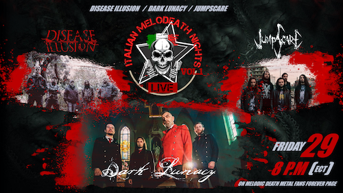 “Italian Melodeath Nights” è la prima edizione del festival telematico “Italian Melodeath Nights” con la partecipazione del trittico tricolore Dark Lunacy, Disease Illusion e Jumpscare.
