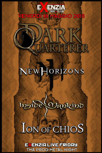 I Dark Quarterer suoneranno all’Exenzia di prato nel TMA Metal Night, serata prog con appunto i Dark Quarterer, New Horizons, Inside Mankind, Ion Of Chios.