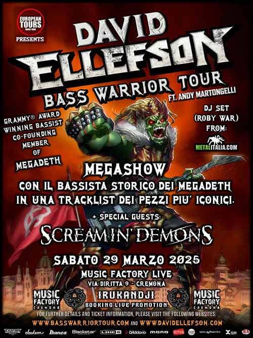 Irukandji Booking Live Promotion annuncia che l’ex bassista dei Megadeth David Ellefson si esibirà il 29 marzo a Cremona.