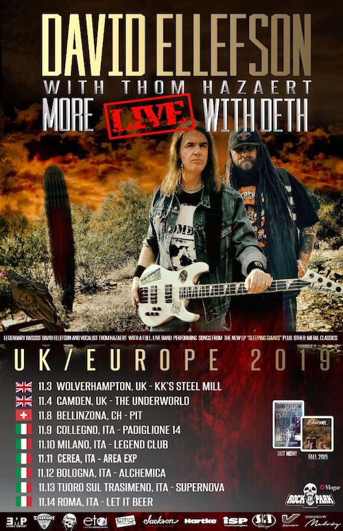 Durante questi show ci sarà una full band che accompagnerà David Ellefson, assieme suoneranno per voi le tracce di Sleeping Giants, pezzi storici dei Megadeth, altri ‘Metal Classics’, più qualche altra sorpresa, mentre, tra un brano e l’altro, David racconterà alcuni aneddoti dei trionfi e delle difficoltà incontrati durante il suo percorso musicale assieme a Thom Hazaert co-autore del nuovo libro ‘More life with Deth’.