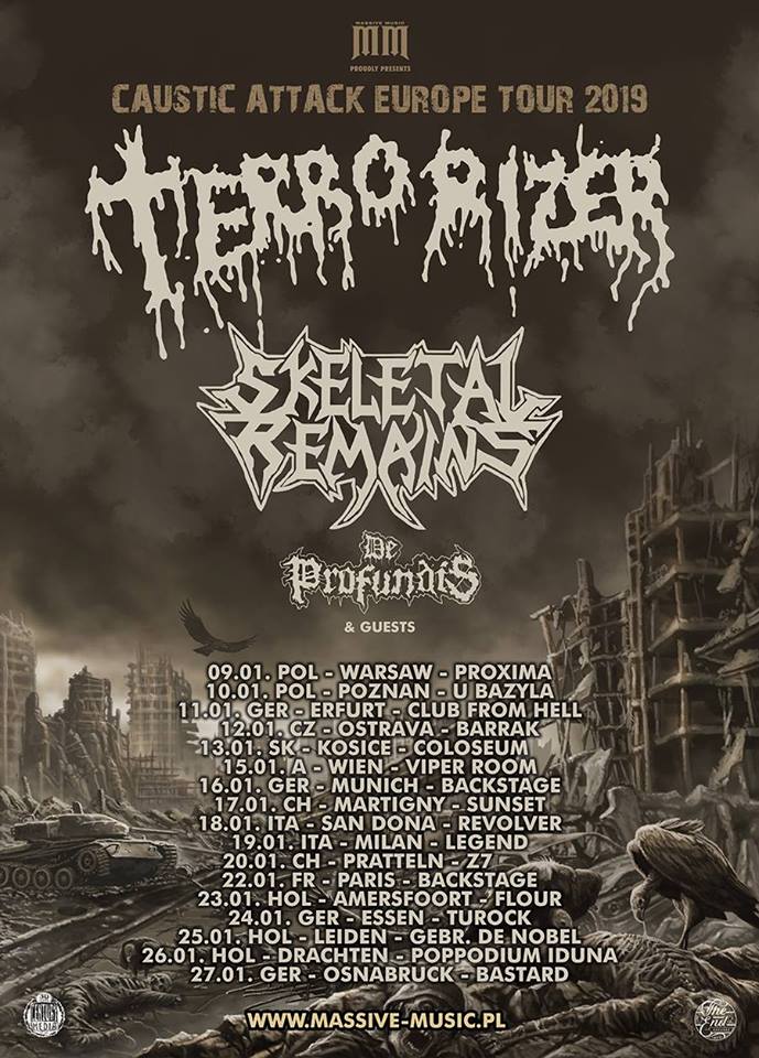 La band accompagnerà le leggende grindcore Terrorizer ed death machine della Century Media Skeletal Remains. Questo per 17 date in giro per l’Europa, partendo da Varsavia il 9 gennaio e toccando il nostro paese il 18 ed anche il 19 (San Donà di Piave e Milano, rispettivamente).