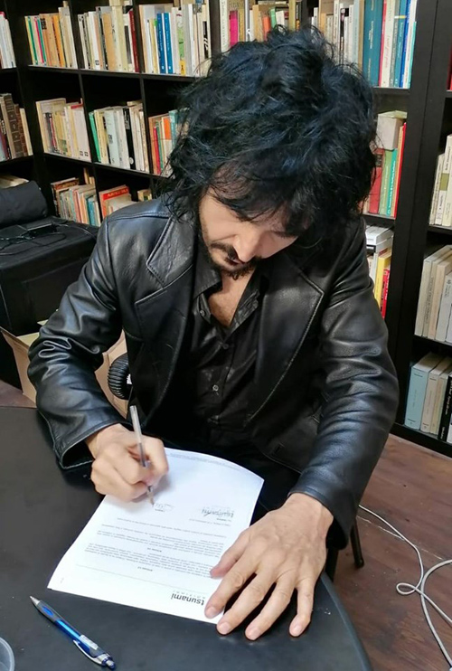 Oggi la pagina facebook della nota Tsunami Edizioni, casa editrice che pubblica ottimi libri sempre orientati al rock e al metal (biografie, trattati, divagazioni, manuali) ha pubblicato uno stato che mostra una foto di Steve Sylvester dei DEATH SS in procinto di firmare un documento su carta intestata della stessa casa editrice.