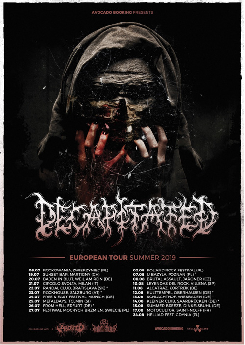 I maestri del death metal DECAPITATED hanno recentemente chiuso un tour estensivo europeo in Polonia, il loro paese natale. Ma non c’è tempo per fermarsi per il quartetto perché il tour estivo è stato giusto annunciato oggi. Con apparizioni al MetalDays (SLO), Alcatraz Metal Festival (B), e Summer Breeze (D) tra gli altri, le 21 date vedranno i DECAPITATED attraversare 11 stati. Il gruppo suonerà anche alcuni show selezionati con la squadra belga ABORTED e gli australiani THY ART IS MURDER. I biglietti sono ora disponibili!