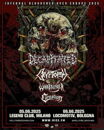 I Decapitated torneranno a colpirci fra gli occhi per due date dissolute questo giugno. A rincarare l’assalto sonoro Cryptopsy, Warbringer e Carnation. Non pensate di uscirne illesi!