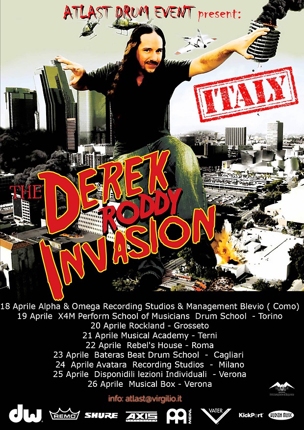 Il talentuoso batterista americano DEREK RODDY (Nile, Hate Eternal, Malevolent Creation e altri) tornerà in Italia per una serie di Clinic dal 18 al 26 di Aprile 2017.