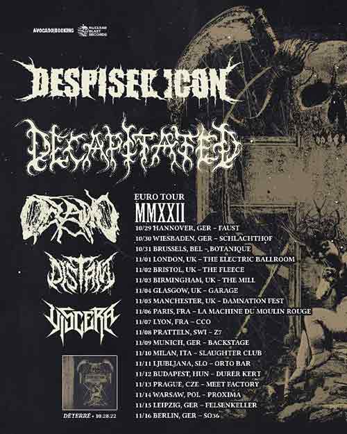 Despised Icon pubblicano l’EP “Déterré” QUI recensito e domani da Hannover in Germania iniziano il proprio tour europeo che porterà la band canadese di deathcore a suonare anche nel nostro paese. Il 10 novembre i Despised Icon saranno sul palco dello Slaughter Club di Paderno Dugnano (MI) con i Decapitated e altri.