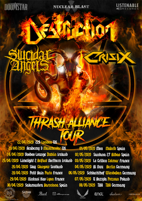 Il cantante e bassista Schmier dichiara: “Ecco qui la seconda parte del nostro tour europeo ‘Thrash Alliance’! Con i thrasher numero uno della Grecia, SUICIDAL ANGELS, e i selvaggi CRISIX di Barcellona portiamo con noi due diamanti grezzi che conquisteranno il pubblico. Ci vediamo nel pit!”.