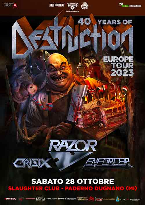 Con loro troveremo i canadesi Razor, assenti dalla nostra penisola da svariati anni. In più lo speed/heavy metal senza compromessi degli Enforcer, attualmente impegnati nelle date a supporto del loro ultimo album “Nostalgia” edito da Nuclear Blast. Infine gli spagnoli Crisix.