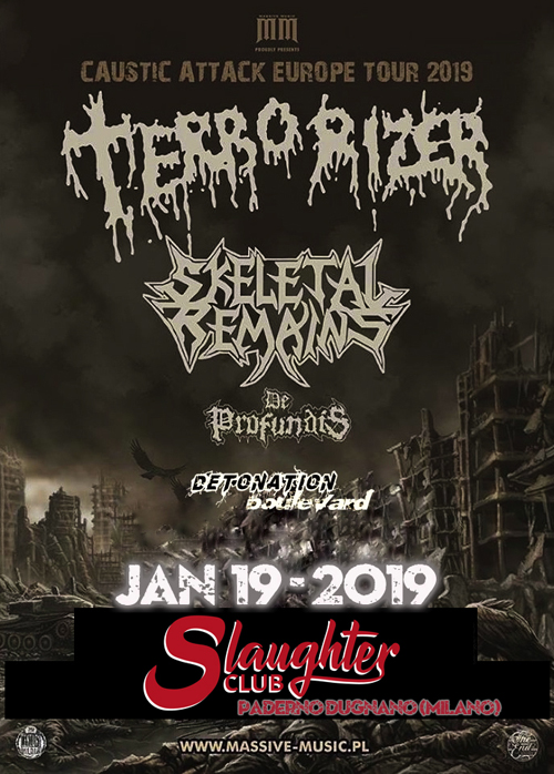 Gli italiani Detonation Boulevard apriranno la data tour milanese dei californiani Terrorizer, accompagnati anche da Skeletal Remains e De Profundis.