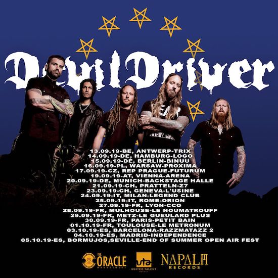 Tour europeo per i DevilDriver tra settembre e ottobre, con due date italiane piazzate nell’elenco delle città. A Milano e Roma il 24 e 25 settembre per la band statunitense che ha pubblicato lo scorso anno l’album “Outlaws ‘Til The End: Vol. 1” per la Napalm Records.