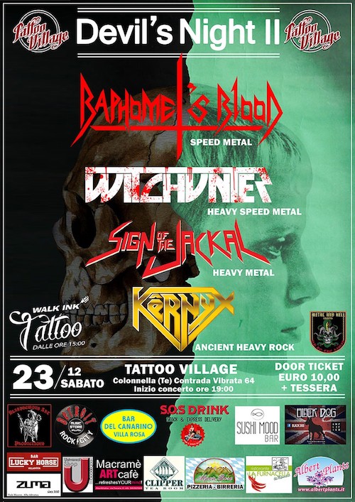 Questa edizione vedrà la partecipazione dei speed metallers tricolore Baphomet’s Blood come headliner, seguiti da Witchunter, Sign of the Jackal e Kernyx.