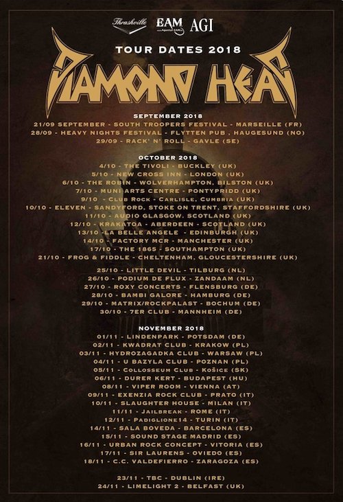 I Diamond Head saranno in tour nel mese di ottobre e novembre, toccando molti paesi europei tra i quali l’Italia. La band britannica sarà infatti nel nostro paese per quattro concerti a Prato, Milano, Roma e Torino tra il 9 e il 12 novembre.