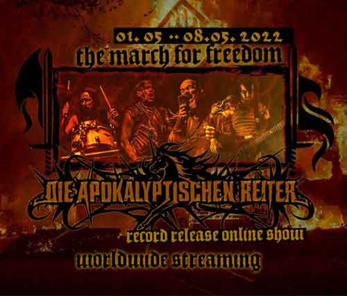 Die Apokalyptischen Reiter, ovvero ‘i quattro cavallieri dell’apocalisse’, hanno pubblicato l’album “Wilde Kinder”, QUI recensito, cioè ‘bambini selvaggi’. L’1 maggio, alle ore 20 QUI, la band celebrerà questo nuovo lavoro in studio con un evento in streaming denominato “The March For Freedom” e per l’occasione la band presenta un video dal vivo per “Von Freiheit will ich singen”, cioè ‘voglio cantare così in libertà’, estratta proprio da questa esibizione che la band diffonderà.