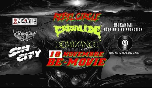 L’evento organizzato dallo staff Rebel Circle e avrà come di consueto il nome Rebel Circle Night. Vedrà avvicendarsi sul palco : Dominance & Crisalide