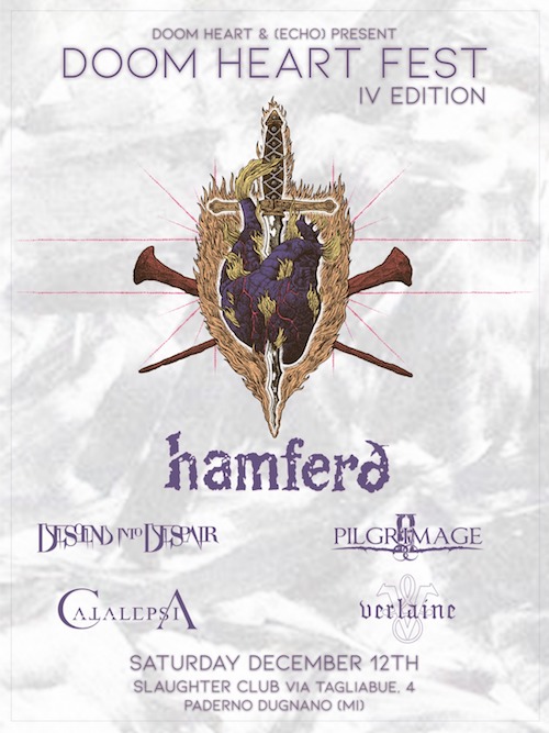 Doom Heart Festival ha annunciato i partecipanti al festival e ora anche la locandina. Il festival si terrà allo Slaughter Club di Paderno Dugnano (MI) il 12 dicembre con Hamferð, Verlaine, Catalepsia, Pilgrimage, Descend Into Despair.