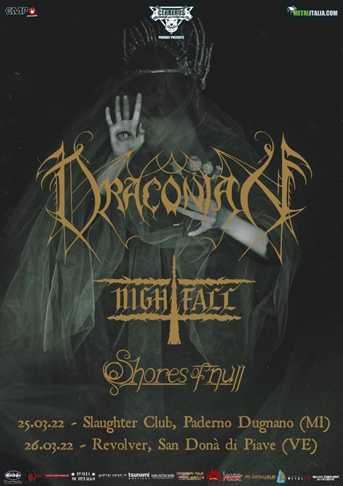Con gli headliners, oltre ai NIGHTFALL saliranno sui palchi italiani anche gli SHORES OF NULL! La band di Davide Straccione e soci presenterà nella sua interezza l’acclamato “Beyond The Shores (On Death And Dying)” (recensione qui), ambizioso lavoro composto da un’unica traccia di 38 minuti ed accompagnato dal pluripremiato short film (creato dal team Sanda Movies) che verrà proiettato durante gli show.