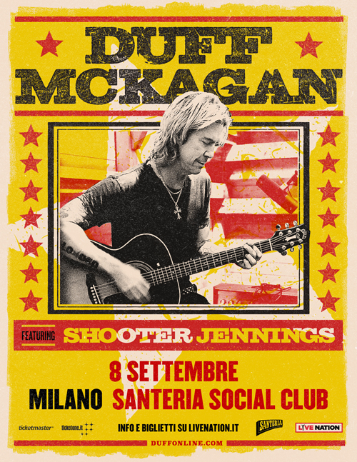 Il bassista dei Guns ‘N’ Roses, DUFF MCKAGAN, suonerà alla Santeria Social Club di Milano il prossimo 8 settembre per un evento unico e irripetibile.I biglietti per il concerto saranno disponibili a partire dalle ore 10.00 di venerdì 26 aprile su www.ticketmaster.it, www.ticketone.it e in tutti i punti vendita autorizzati.