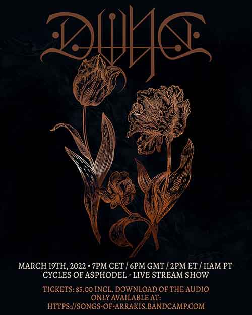 Dvne annunciano una performance in streaming, diffusa attraverso Bandcamp,  il 19 marzo alle 19. I biglietti sono disponibili QUI.