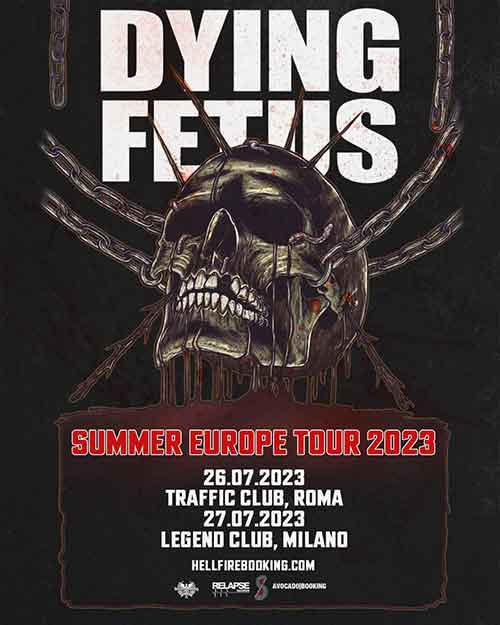 A cinque anni dall’ultima volta in Italia, Hellfire Booking Agency, in collaborazione con Erocks Production e Traffic Club, annuncia il ritorno con un doppio concerto dei Dying Fetus. Una band regina del death metal con influenze hardcore e grindcore che si eibirà nuovamente nel nsotro paese il 26 e 27 luglio a Roma e Milano.