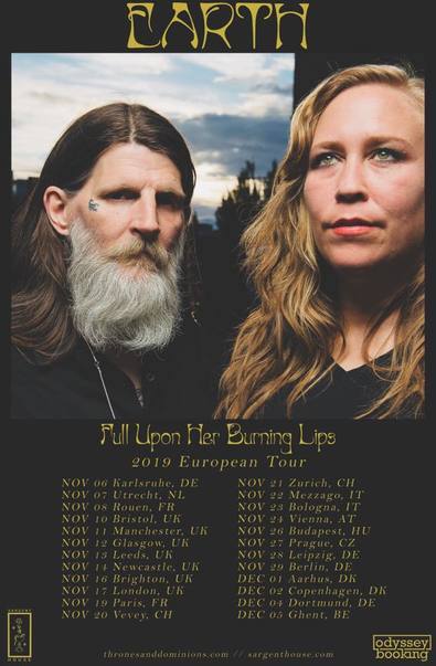 Gli Earth annunciano un tour europeo che si terrà tra novembre e la prima parte di dicembre. Il duo, di rock psichedelico e noise, si esibirà anche in Italia il 22 novembre a Milano e il giorno seguente a Bologna. Di seguito i dettagli del tour e lo streaming dell’album “ull Upon Her Burning Lips”.