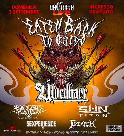 Headliner del festival saranno gli Ulvedharr da Bergamo, dediti ad un death metal a tematiche vichinghe. Gli Apocalyptic Salvation, da Reggio Emilia, ci portano un death metal caratterizzato da tempi serrati e riff taglienti. Hanno da poco pubblicato il loro ultimo album “L.O.V.E. (Loneliness Of a Visceral End)”. I Sun Titan, da Modena, nuova band con uno stile misto djent e modern metal e poi i Sexperience, band dedita al groove metal corroborato dal crossover e infine i Toxiarch, nuova formazione death/thrash formata da elementi storici del panorama metal locale.