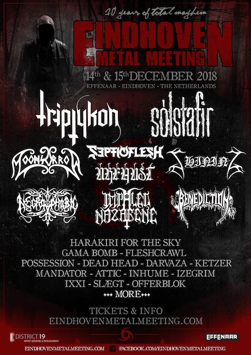 Altre conferme per l’Eindhoven Metal Meeting 2018, giunto al suo decimo anno di vita. Le nuove band da poco confermate sono Moonsorrow, Impaled Nazarene, Harakiri For The Sky, Mandator, Attic & Ixxi. Di seguito la configurazione, comunque non ancora definitiva, dei partecipanti al festival che si terrà nella città olandese il 14 e 15 dicembre.