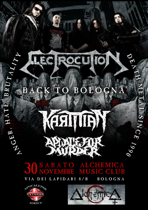 Tutto confermato per il concerto che segna il ritorno live dei deathsters ELECTROCUTION a Bologna, città di origine della band, previsto per il prossimo sabato 30 novembre presso Alchemica Music Club.