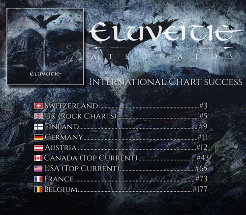 NUCLEAR BLAST è orgogliosa di annunciare che il nuovo album degli ELUVEITIE, “Ategnatos”, è entrato nelle classifiche di tutto il mondo, inclusa la Svizzera al terzo posto e la Germania all’undicesimo posto.