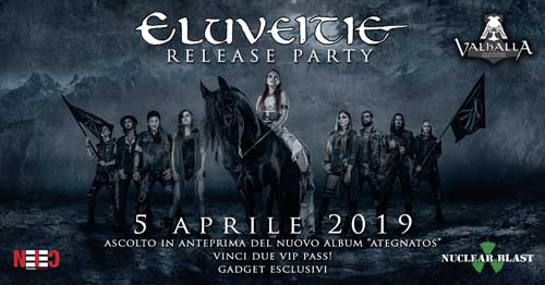 Ma non è tutto, i fan italiani degli ELUVEITIE sono invitati all’esclusivo Release Party di “Ategnatos” che si terrà venerdì 5 Aprile 2019 dalle ore 19 al Valhalla Pub di Borgo Ticino (NO).