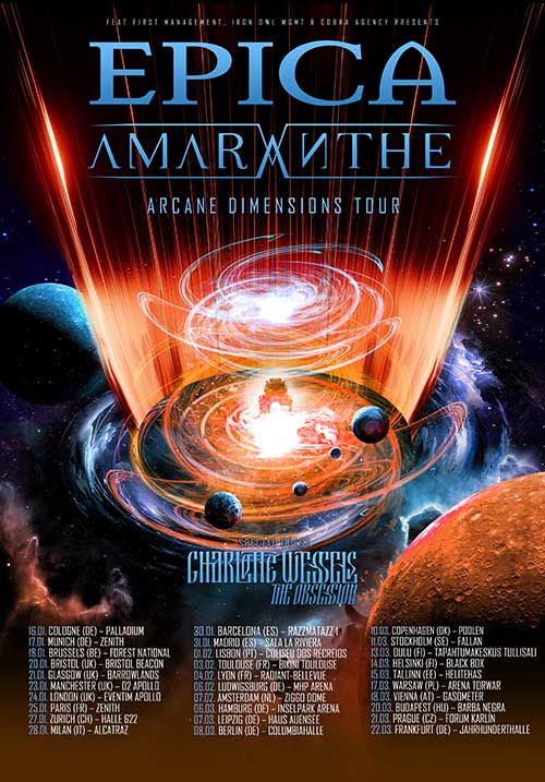 Da gennaio a marzo, gli EPICA intraprenderanno il tour europeo “The Arcane Dimensions” insieme agli Amaranthe e ai The Obsession di Charlotte Wessels, che riunirà tre delle forze più dinamiche del genere per un’esperienza live indimenticabile.