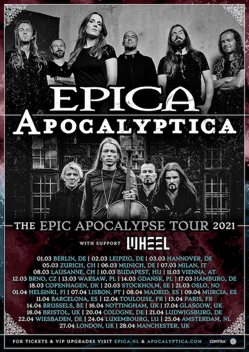 L’”Epic Apocalypse Tour” degli Epica, in compagnia degli Apocalyptica ve dei Wheel è stato posticipato a primavera 2021.