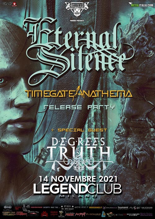 Tutto pronto per la serata del 14 novembre che vedrà gli ETERNAL SILENCE esibirsi sul prestigioso palco del Legend Club di Milano per presentare la loro ultima fatica in studio “Timegate Anathema” (Rockshots Records), album accolto caldamente da pubblico e critica sin dalla sua pubblicazione.