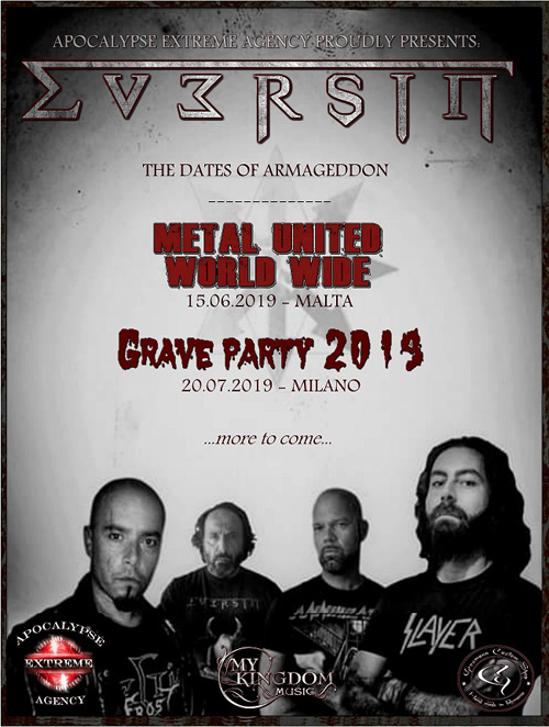 I thrasher siciliani EVERSIN sono stati confermati tra i gruppi principali della prossima edizione del METAL UNITED WORLDWIDE FESTIVAL che si terrà a Malta il prossimo 15 giugno.