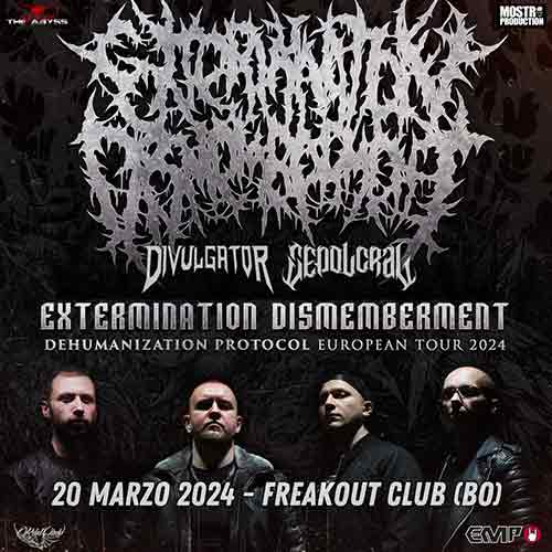 La slam-brutal death metal band di Minsk Extermination Dismemberment sarà in Italia il 20 marzo per promuovere il suo ultimo album “Dehumanization Protocol”. Si esibirà il 20 marzo al Freak Out di Bologna e con i bielorussi ci saranno anche i Divulgator, nati nel 2018 con l’intento di mescolare sonorità punk/metal a tematiche divulgative di vario ambito! La band della divulgazione ha pubblicato il primo album autoprodotto “Habemus Quarkcore” nel 2021. In più i Sepolcral di Udine, con all’attivo l’album d’esordio “Victims”, registrato nel 1996 ma pubblicato dopo varie vicissitudini solo nel 2017 e l’ultimo “Scourge”, pubblicato l’anno scorso.