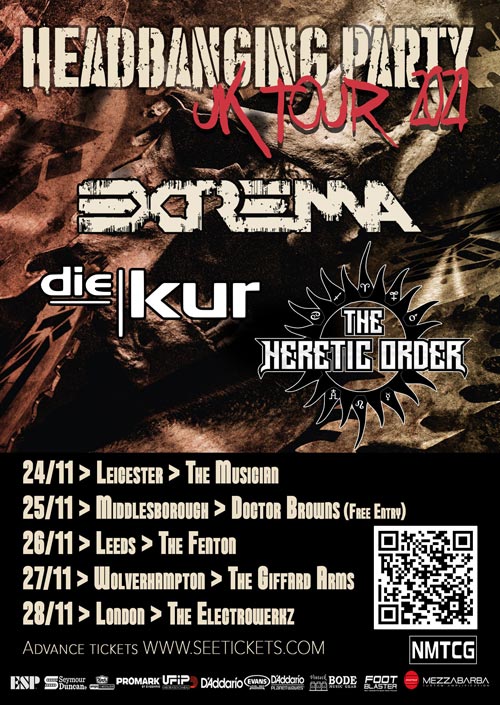 A completare la line-up di questo “Haeadbangers Party UK Tour” troveremo i londinesi DIE KUR, dediti ad un industial metal oscuro e imprevedibile, e i THE HERETIC ORDER, formazione heavy metal attualmente impegnata con le date a supporto del loto ultimo album “Evil Risinng” edito da Massacre Records.