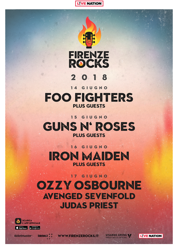 E questo è solo l’antipasto di Firenze Rocks 2018! A breve tutti gli ospiti che andranno a completare la line-up. Le informazioni sul festival, le band e le prevendite sono disponibili sul nuovo sito www.firenzerocks.it e sulla nuova applicazione (per Android e iOS) di Firenze Rocks.