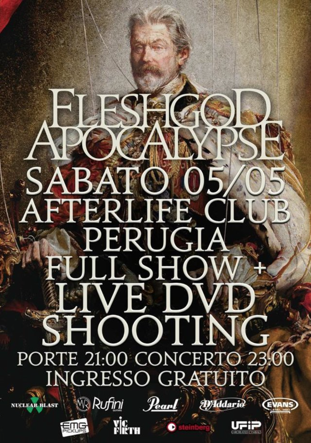 Inoltre, i FLESHGOD APOCALYPSE hanno annunciato un show gratuito a Perugia il 5 Maggio 2018. La band filmerà il concerto (incluse performance speciali & sorprese) per l’uscita del prossimo DVD. Meglio non perdere questo evento assolutamente unico – maggiori dettagli saranno presto svelati!