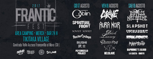 Il 17, 18 e 19 agosto 2017 il Tikitaka Village di Francavilla Al Mare – a due passi da Pescara – ospiterà la prima edizione del Frantic Fest, una tre giorni che si propone di radunare sotto la stessa bandiera rock, metal e punk.