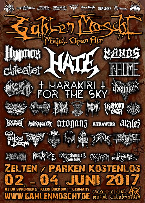 Di seguito la locandina del Gahlenmoscht Festival che si terrà in Germania dal 2 al 4 giugno 2017 a Spremberg, nel Brandeburgo e dunque Germania orientale.