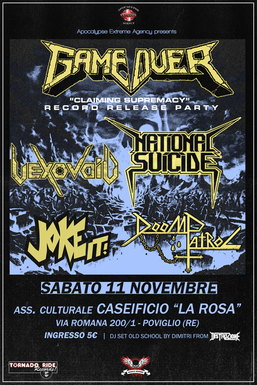 SABATO 11 NOVEMBRE 2017 – GAME OVER RELEASE PARTY NEW ALBUM “CLAIMING SUPREMACY”
