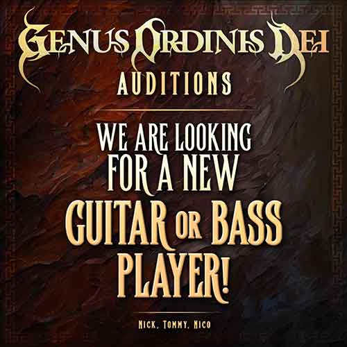I Genus Ordinis Dei stanno scrivendo un nuovo capitolo della loro storia con avventure ambiziose all’orizzonte. Per questo, la band è alla ricerca di un nuovo chitarrista o bassista pronto a unirsi ufficialmente al viaggio e a conquistare il palco insieme a loro!
