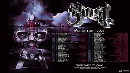 Live Nation annuncia che i Ghost arrivano in Italia con l’unico appuntamento italiano del loro World Tour 2025, domenica 4 maggio 2025 all’Unipol Forum di Milano.
